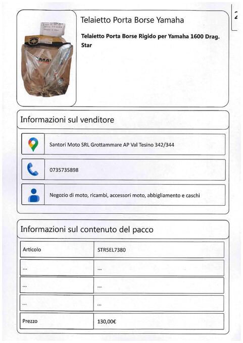 Descrizione: Telaietto Porta Borse Rigido per Yamaha 1600 Drag. Star