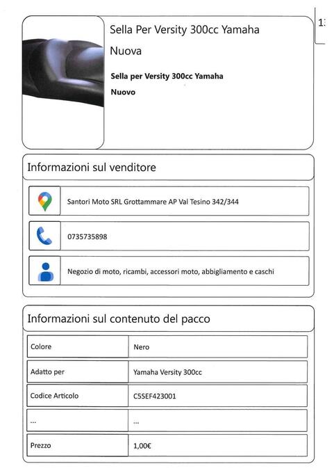Oggetto: Sella Per Versity 300cc Yamaha Nuova