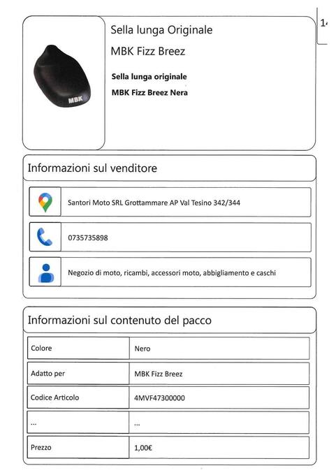 Oggetto: Sella lunga Originale MBK Fizz Breez