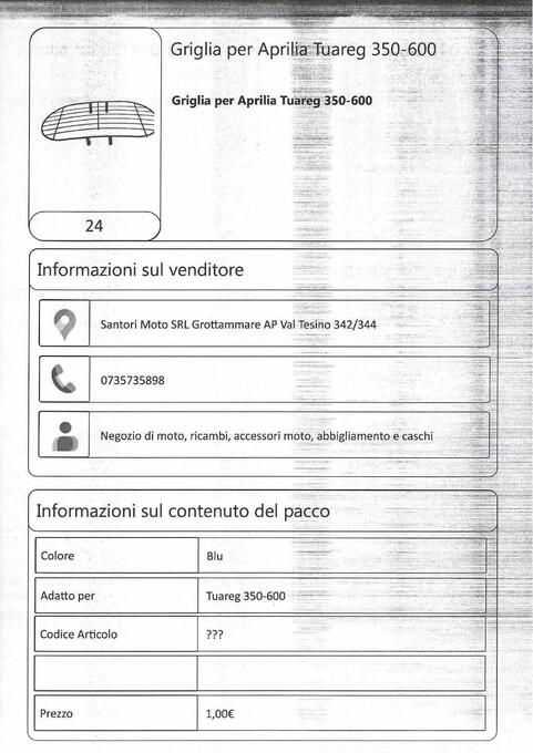 Oggetto: Griglia per Aprilia Tuareg 350-600